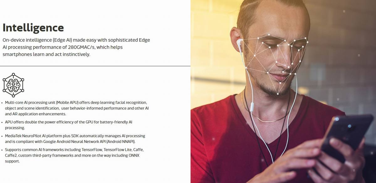 Сегодня нейроморфный процессор, входящий в чипсет, является очень популярной разработкой, которая в современных реалиях очень полезна. Итак, нейропроцессор NeuroPilot Edge AI необходим для точного распознавания лица, распознавания сцен, определения объектов и прочего. APU-блок позволяет вдвое сократить потребление графическим процессором потребления энергии, когда тот имеет дело с приложениями, включающими в себя нейросети. Нейроморфный блок также позволит каждому устройству на его базе самостоятельно учиться, учитывать пожелания и поведение пользователя, что благотворно повлияет на скорость работы, энергоэффективность и прочее. В целом же хорошо, что он есть, а найти ему применение несложно. К примеру, нейросети можно спокойно подключить к постобработке фото, тем самым и разгружая процессор, и улучшая фотографии без лишних манипуляций.