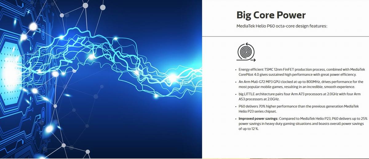 Инженеры Mediatek создали новый среднеценовой чипсет с привкусом субфлагмана, который получил все современные наработки и может похвастаться улучшенными показателями производительности и энергоэффективности. Процессор обзавелся нейроблоком под названием Mediatek NeuroPilot Al, который позволит любому смартфону учиться и развиваться, понимать своего пользователя и обеспечивать ему самый лучший опыт использования. Чипсет получил 12-нм техпроцесс, что уже говорит о его свежести и продвинутости. Более того, Helio P60 при всех своих достоинствах стоит весьма не дорого. Примерно такой текст можно встретить на главной странице Mediatek с чипом Helio P60. Действительно ли чипсет настолько хорош, давайте детально разбираться.![]()