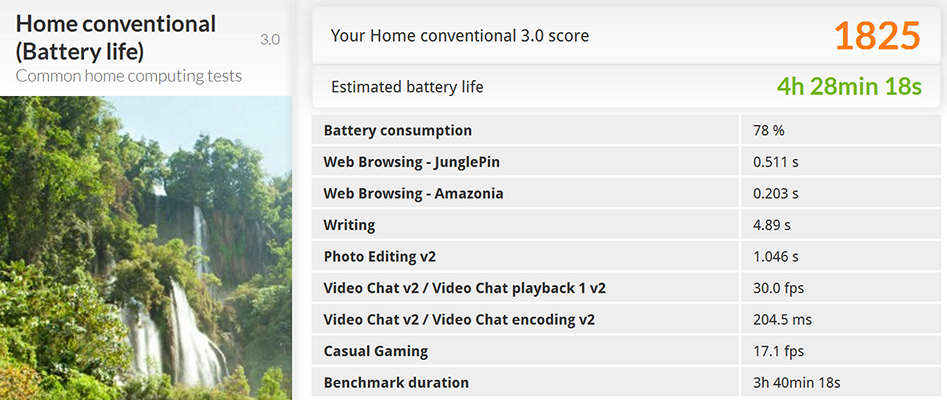 Автономность Lenovo Miix 510 весьма хорошая. Производитель обещает до 7,5 часов под нагрузкой и такое заявление не является фантастикой, поскольку аккумулятор на 9600 мАч способен на нечто подобное. Правда, отплатить за долгое время жизни пришлось весом устройства, так как его масса на 35% выше, чем у соперников. Впрочем, 880 грамм без клавиатуры - это в пределах нормы.