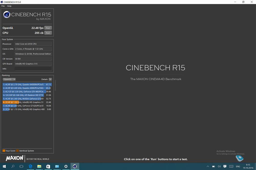 Производительность Galaxy Tab Pro S находится на примерно том же уровне, что и у Huawei MateBook. В устройстве доступно 4 ГБ ОЗУ и 128 ГБ ПЗУ - этого достаточно, чтобы быстро работать в легких задачах, но чуда в рендеринге видео или работе PhotoShop ожидать не стоит - все же это продвинутый планшет, нежели ноутбук. CineBench в синтетике показывает следующие результаты рендеринга картинки на Galaxy Tab Pro S.