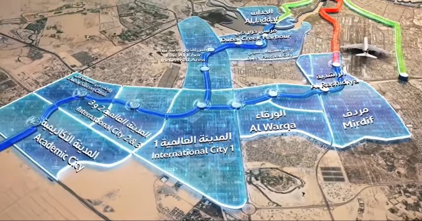 3. Далее ветка направится в район Al Warqa, примерная локация станции - https://maps.app.goo.gl/XtN4KeAMxmN383EP6